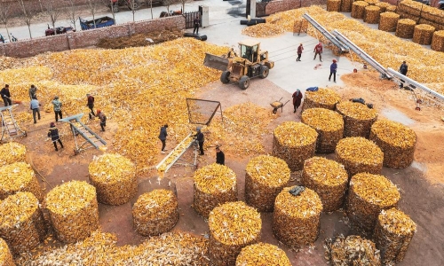 “地趴粮”是一种粗放的粮食储存方式,指的是玉米穗收获后,因农户家里没有储存设施,或缺少适宜装具,简单地堆放在地面储存。这种储粮方式有很多弊端:下层的粮食接触泥土,不利于通风干燥,容易霉变发芽,导致粮食品质降低;被老鼠偷吃、畜禽啃咬,籽粒脱落还会造成大量损耗。